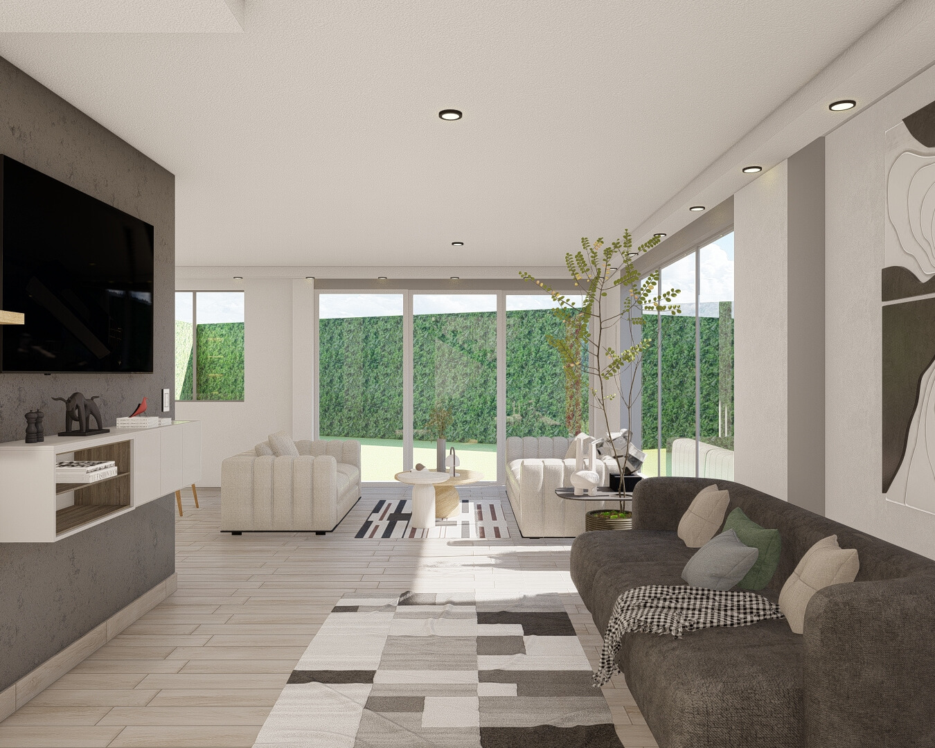 - Diseñamos patios internos y jardines verticales que integran vegetación viva dentro del hogar.